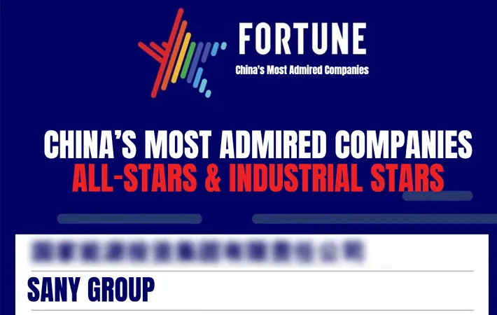 SANY Group is awarded the title of China's Most Admired Company for 2023 by Fortune.